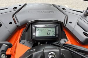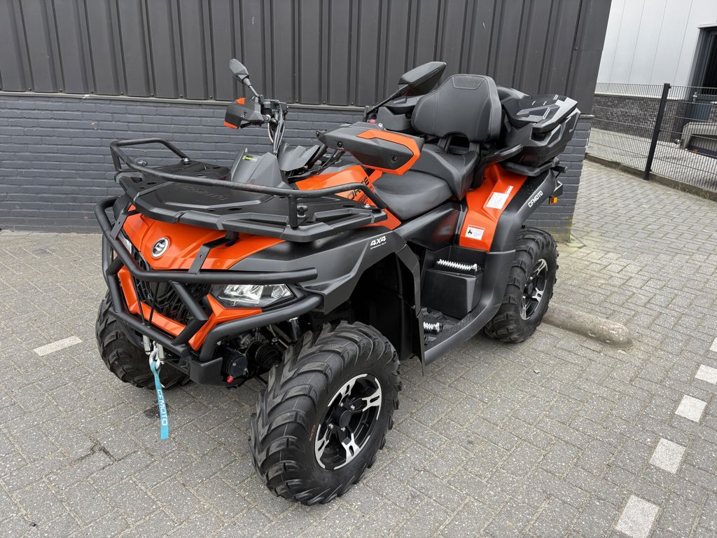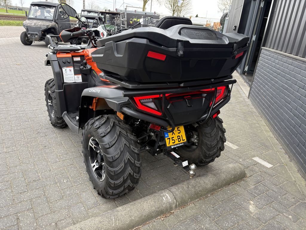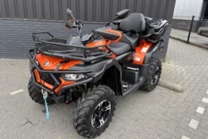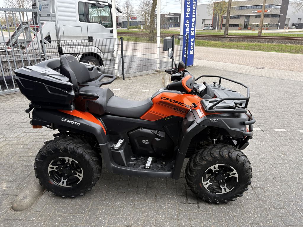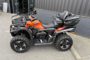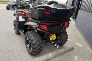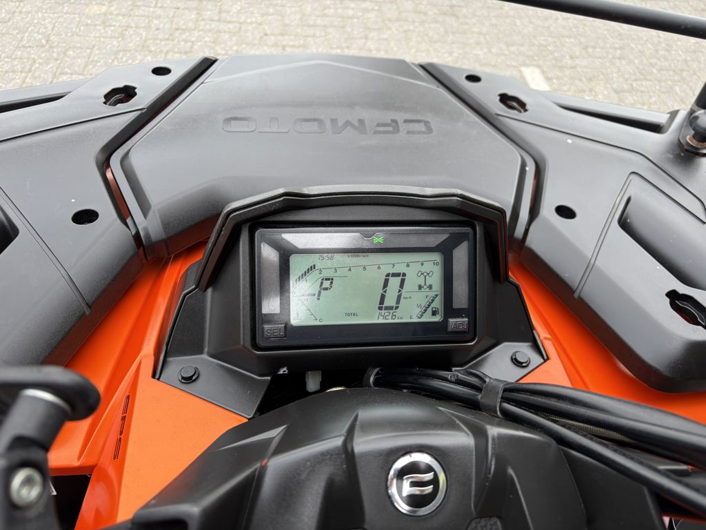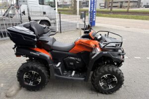 CFMoto CForce 625 Touring EPS met AUTO-kenteken. Slechts 1430km gereden. Nieuw door ons geleverd. Deze quads zijn standaard rijk uitgerust met: * Vloeistofgekoelde motor * Automaat met Hoog en Laag vooruit & achteruit * Elektrisch inschakelbaar differentieel achter, 4WD en diff-lock voor * Lier * EPS, Stuurbekrachtiging * Trekhaak met 7-polige stekker Als extra opties: * Bumper voor * Koffer * Bagagerekverhoger Deze quad wordt afgeleverd inclusief 6 maanden garantie. Prijs €9.400,- Marge