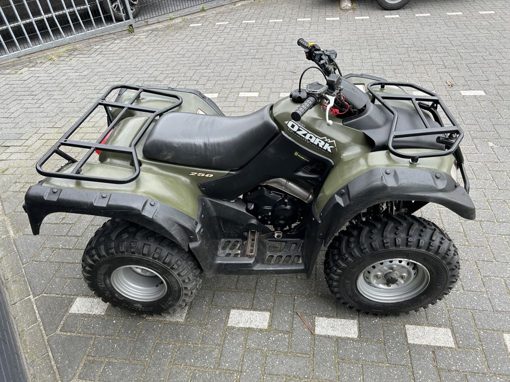 Nette Suzuki Ozark 250, Kappen heel, staat rondom op goede banden. Deze quad is vergelijkbaar met de Yamaha Big Bear 250, Bruin 250 of Honda TRX250 Recon